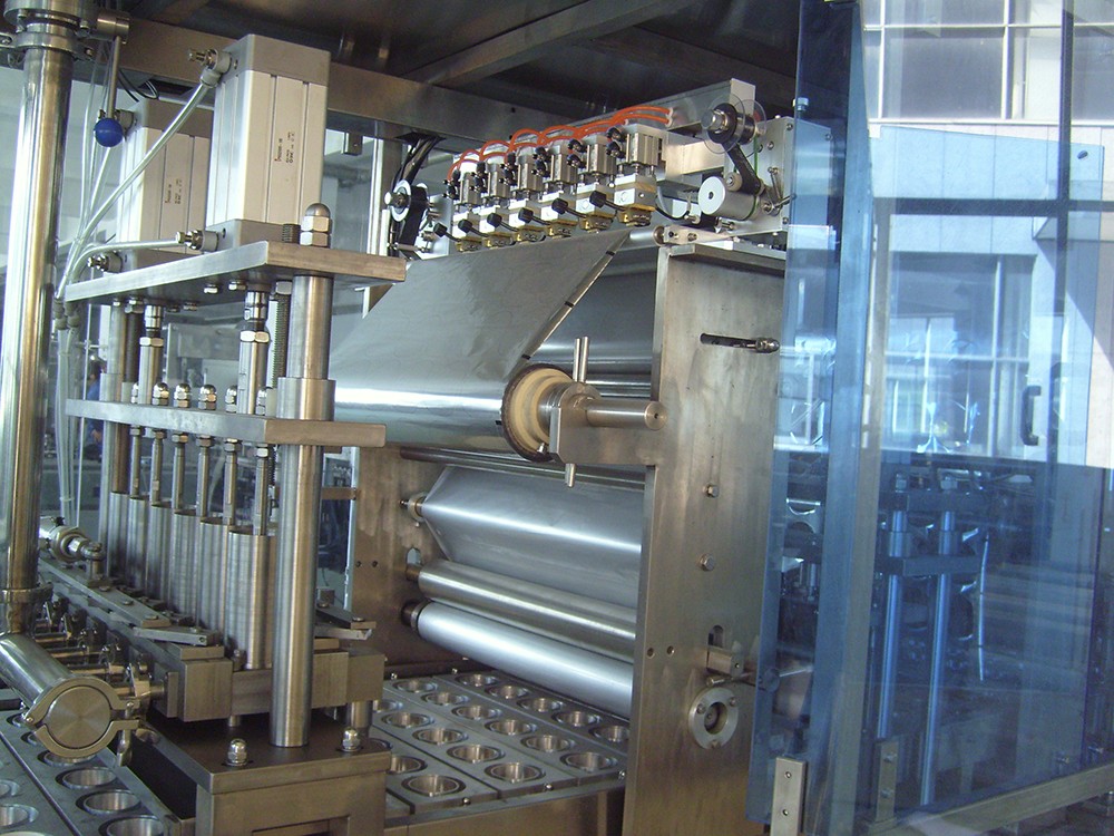 SKB系列全自動灌裝封口機是適用于預制塑杯、紙杯或紙塑杯通用的直線步進式灌裝封口設備,該機型采用卷膜。該機可自動完成下杯、灌裝、切膜、對標、打碼、封口、出杯、輸送等動作。標準型機架的設備適用于50-300毫升/杯的灌裝容量,特別設計的物料灌裝系統(tǒng)和CIP清洗裝置適用于灌注生產過程中衛(wèi)生要求嚴格的產品。該機型可用于純牛奶、酸奶、乳飲料、豆?jié){、果汁、果凍、冰淇淋、調味品、日化等液體或半黏稠狀物料的灌裝,可定制含顆粒物料的灌裝系統(tǒng);除常溫灌裝外,也可定制適用于熱灌裝的系統(tǒng)。 可根據用戶需求,設計新機型。
