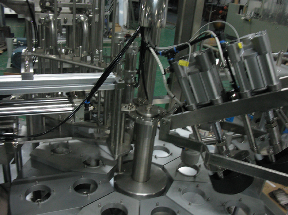• SKB-R旋轉(zhuǎn)式紙(塑/鋁)杯灌裝封口機,具有自動下杯,自動定位灌裝,自動吸蓋,自動壓蓋,自動出杯,液位自動控制功能. 本機用于紙(塑/鋁)杯裝鮮奶,酸奶,純凈水,冰水,果汁飲料,豆奶,奶制品,調(diào)味品,洗滌化工液,固體顆粒等介質(zhì)的充填封口. 設(shè)備低能耗,占地面積小,產(chǎn)量高為最顯著特點.并配有進口PLC、電機、氣動元件、控制元件,確保設(shè)備可靠,穩(wěn)定運行。 可根據(jù)用戶需求,設(shè)計新機型。 圖片,參數(shù)僅作參考,如有改動,恕不另行通知。